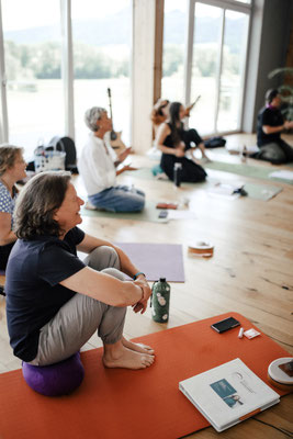 - Du brauchst: Deinen Computer/Laptop (ev. Kopfhörer), deine Unterlagen (Skript, Songbook, extra Handouts - schicke ich dir zeitnah zu oder sind in der Gruppen-Drop Box bereit), Schreibsachen, Yogamatte/Matte, Sitzkissen, eine Blume, Glas Wasser, Percussion & Begleitinstrumente (wenn vorhanden),...